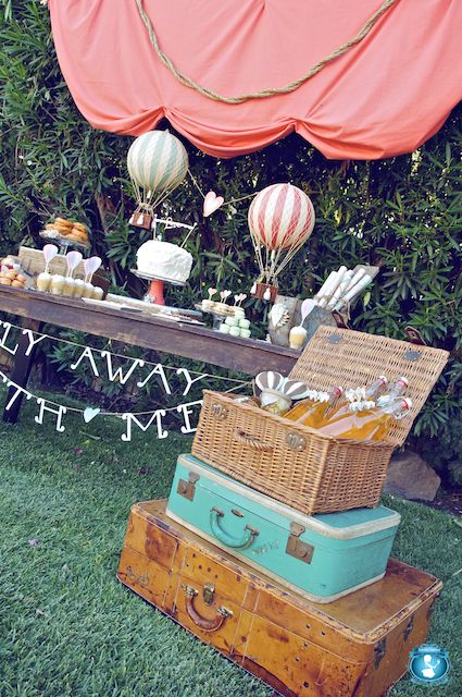 The planning begins with the invitations: Our "Oh The Place's She'll Go Invitations" are perfect with the hot air balloons and map theme that they quickly became the décor inspiration for the party. These custom hot air balloons can be found in our website Sugar and Spice Invitations.com