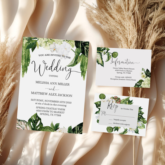 Elegant Watercolor Greenery Savannah Wedding Invitation