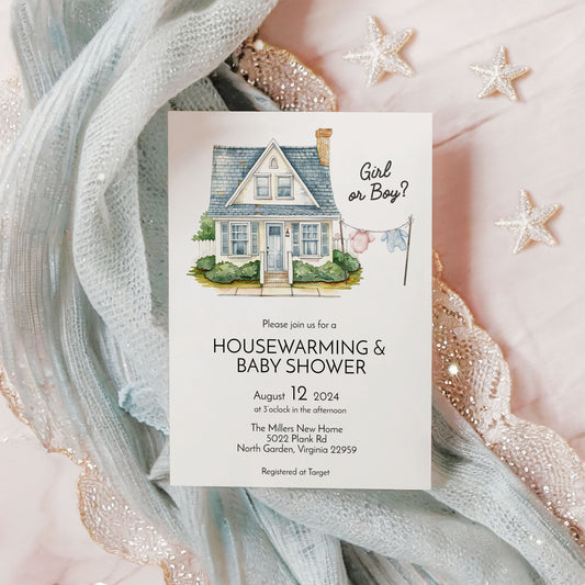 Housewarming & Gender Reveal Baby Shower Invitation