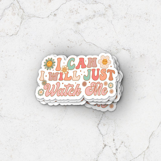 I Can, I Will, Just Watch Me Waterproof Stickers