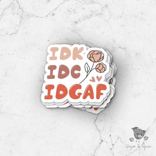 IDK. IDC. IDGAF Sarcasm Waterproof Transparent Sticker