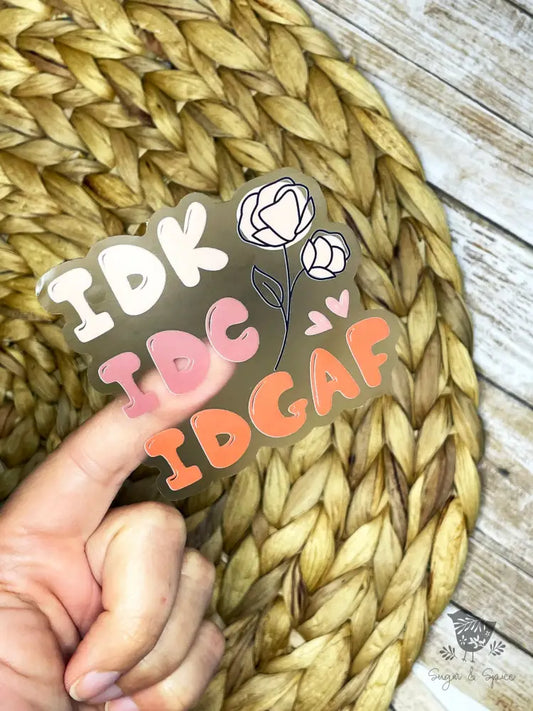 IDK IDC IDGAF Transparent Waterproof Sticker