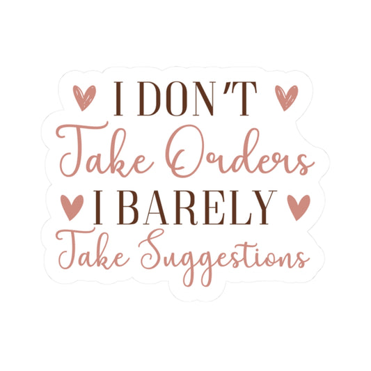I don't take orders I barely take Suggestions - Sarcastic Funny - Waterproof Vinyl