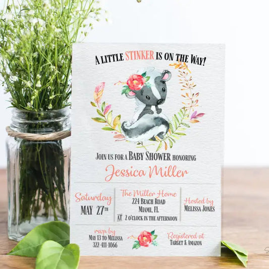 Little Stinker Skunk Baby Shower Invitation