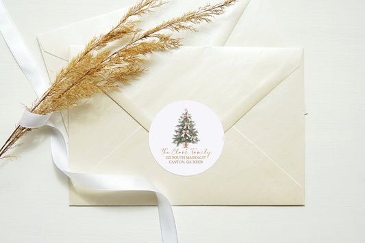 Pink Christmas Tree Return Address Sticker or Label