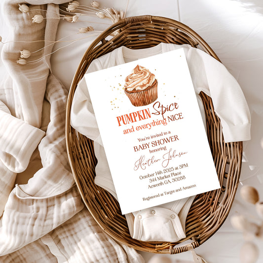 Pumpkin Spice Cupcake Baby Shower Invitation