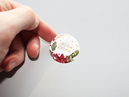 Red Poinsettia Christmas Return Address Sticker or Label