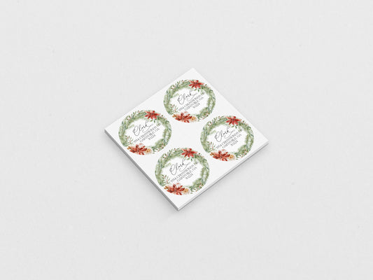 Red Poinsettia Wreath Christmas Return Address Sticker or Label