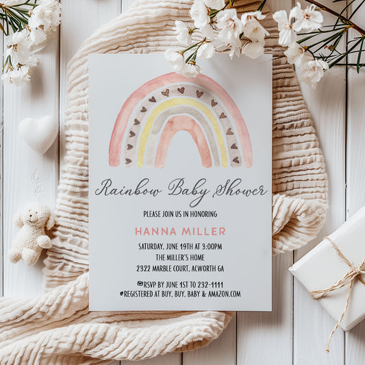 Rainbow Boho Baby Shower Invitation