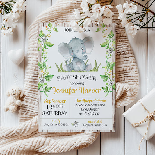 Rustic Elephant Baby Shower Invitation