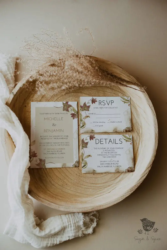 Rustic Fall Watercolor Maple Leaf Wedding Invitation
