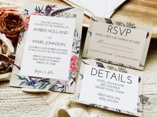 Rustic Floral Boho Bohemian Wedding Invitation