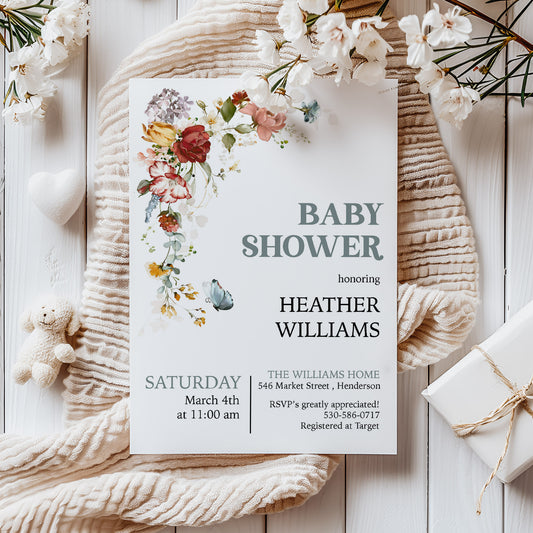 Wildflowers Boho Baby Shower Invitation