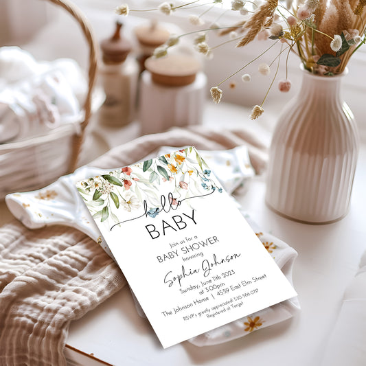 Wildflower Hello Baby Shower Invitation