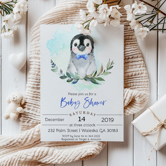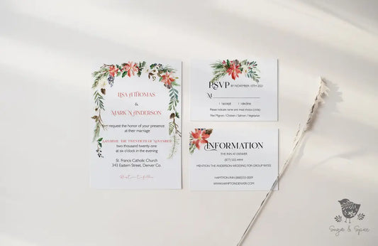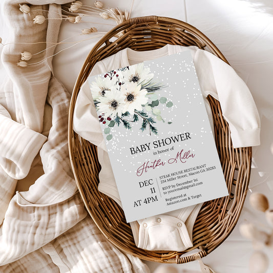 Winter Evergreen Bow and Flowers Bridal Shower Invitation