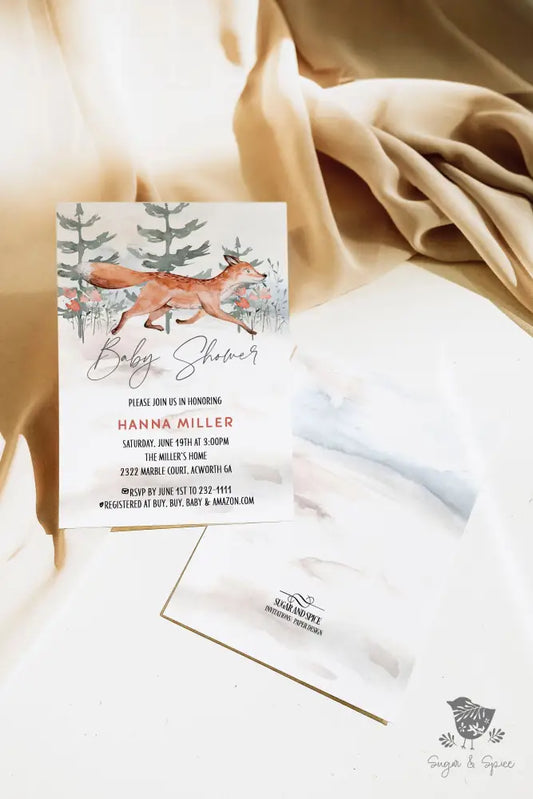 Woodland Fox Baby Shower Invitation