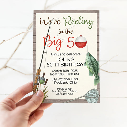Fishing Reel in the Big One Any Age Birthday Invitation