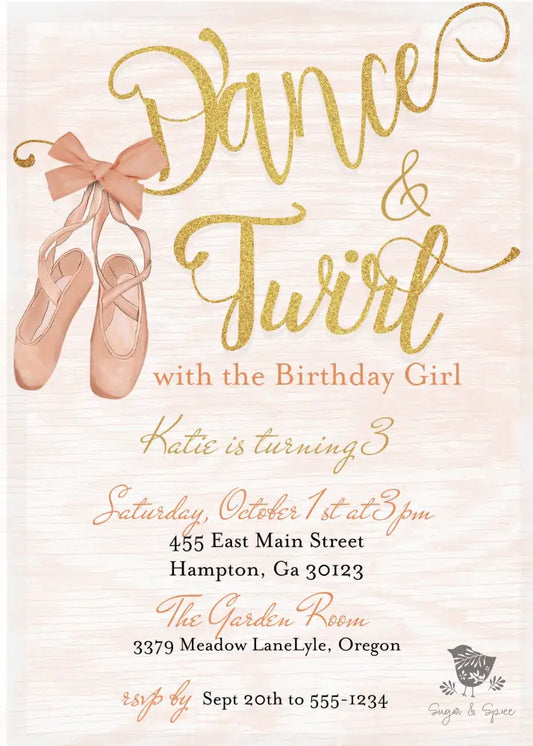 Dance and Twirl Pink Bow Coquette Ballerina Birthday Invitation