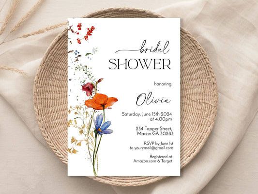 Something Blue Wildflower Boho Bridal Shower Invitation