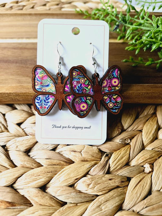 Butterfly Wood Inlay Earrings
