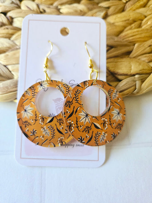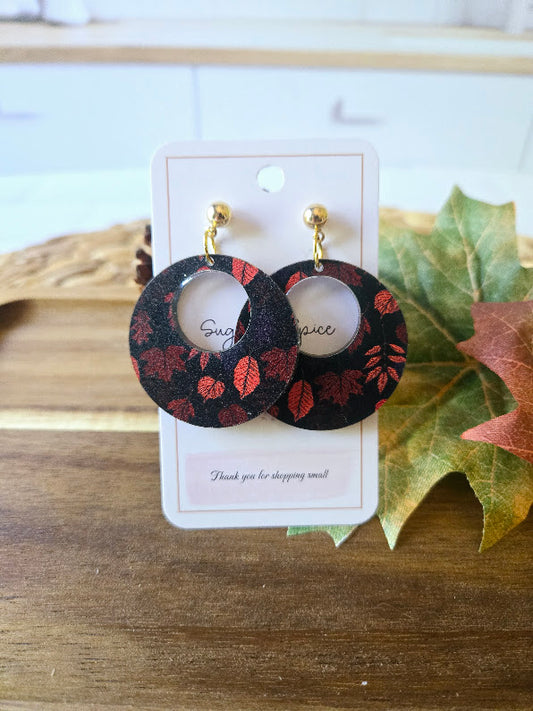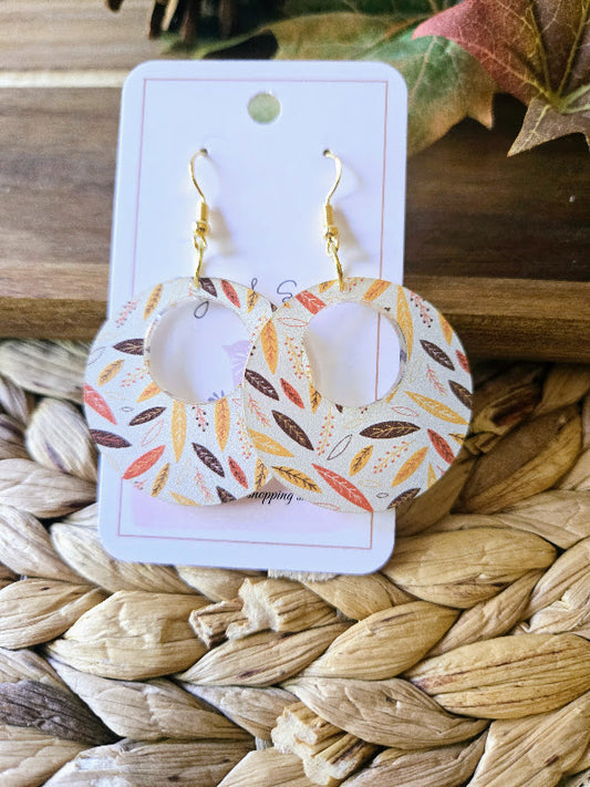 Fall Colorful Brown Leaves with Leather Earrings