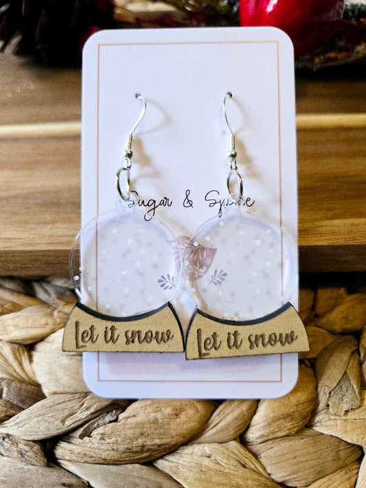 Snow Globe Let it Snow Christmas Earrings