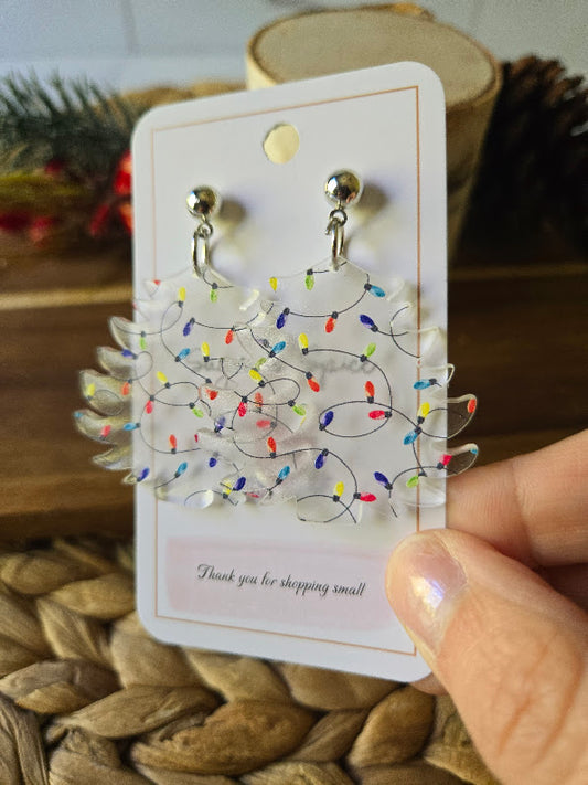 Frosted Christmas Tree with Lights Dangle Earrings