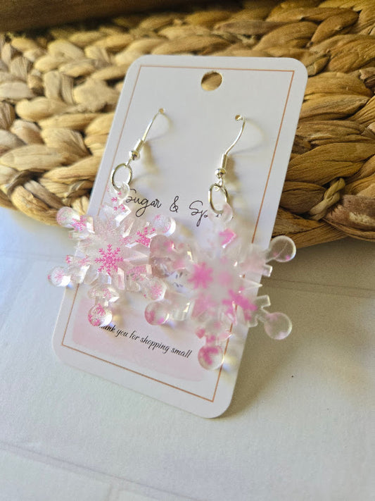 Pink Snowflake Frosted Acrylic Dangle Earrings