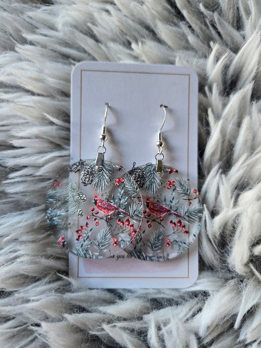 Frosted Cardinal Christmas Dangle Earrings