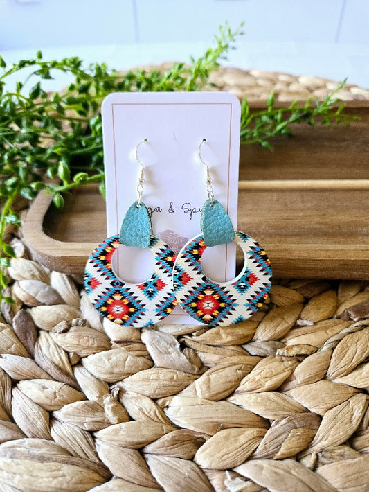 Turquoise Western Tribe with Leather Dangle Earrings