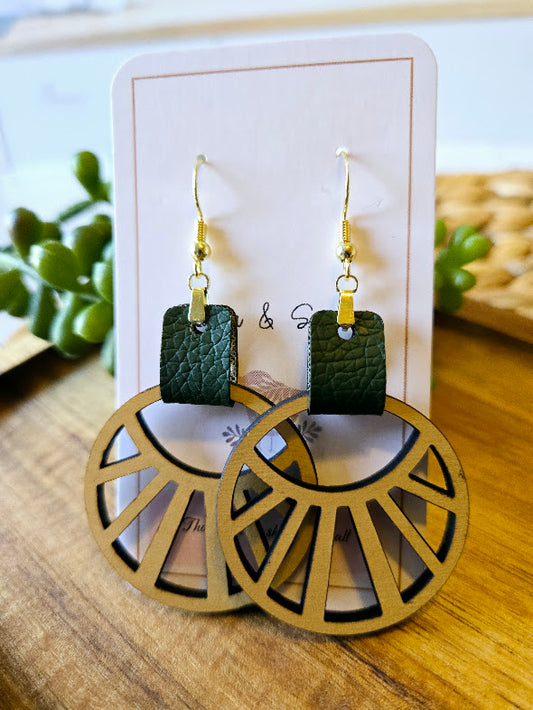 Abstract Boho Green Faux Leather Earrings