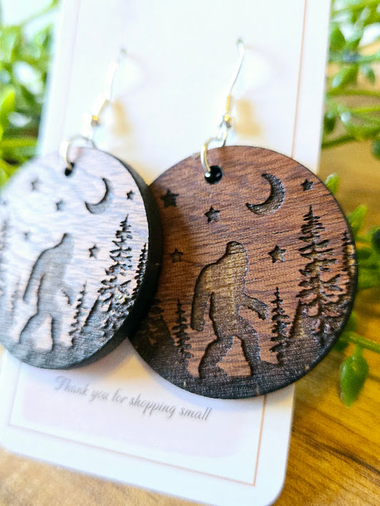 Sasquatch Wood Engraved Rustic Earrings