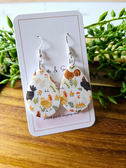 Chicken Teardrop White Acrylic Earrings