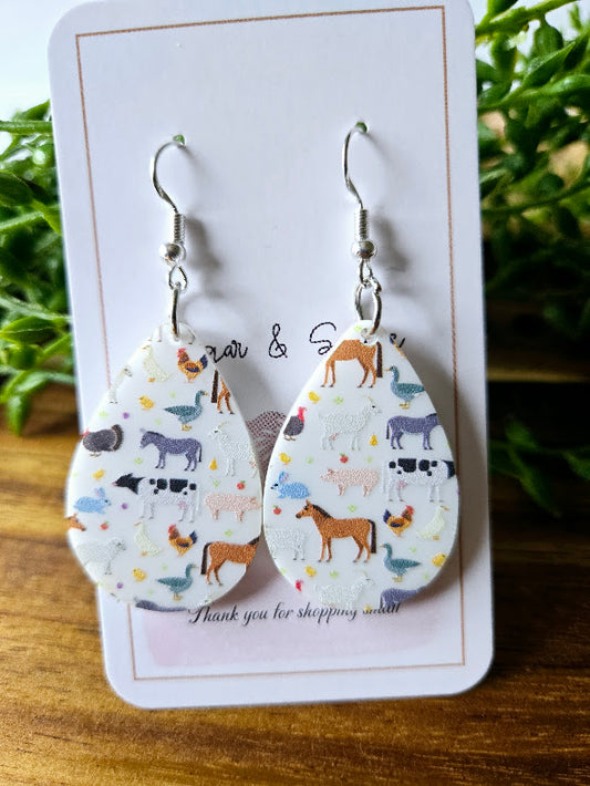 Farm Teardrop White Acrylic Earrings