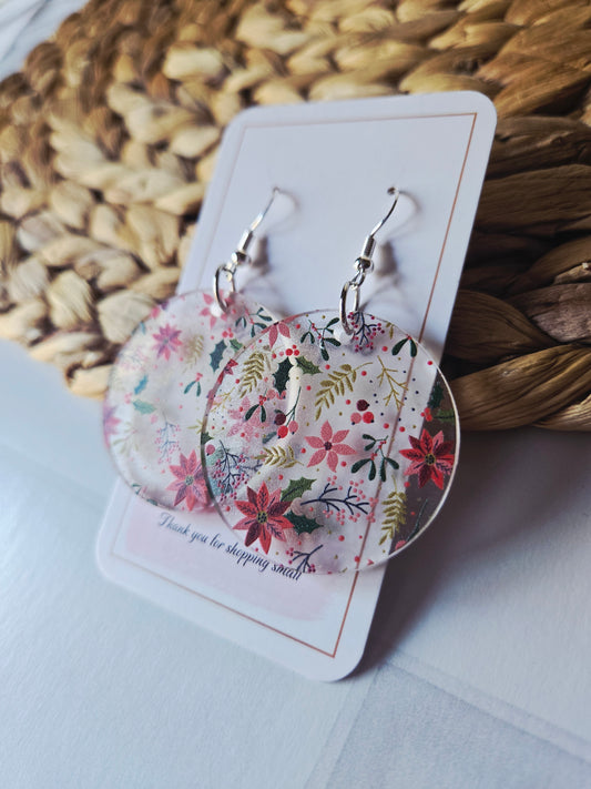 Frosted Poinsettia Christmas Dangle Earrings