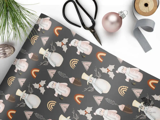 Pink Snowman and Lattes Christmas Wrapping Paper