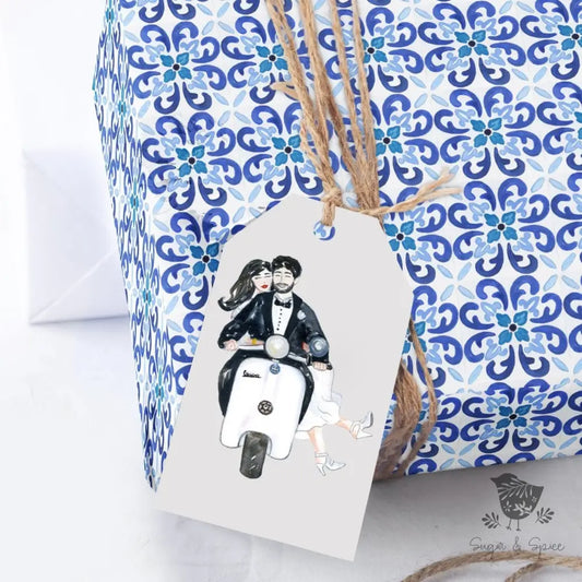Mediterranean Amore Watercolor Vespa Wedding Gift Tag
