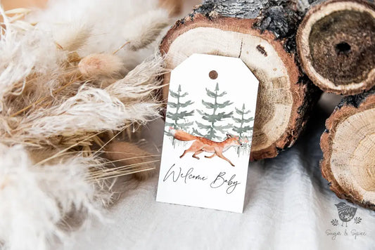 Woodland Forest Fox Birthday or Baby Shower Gift Tag