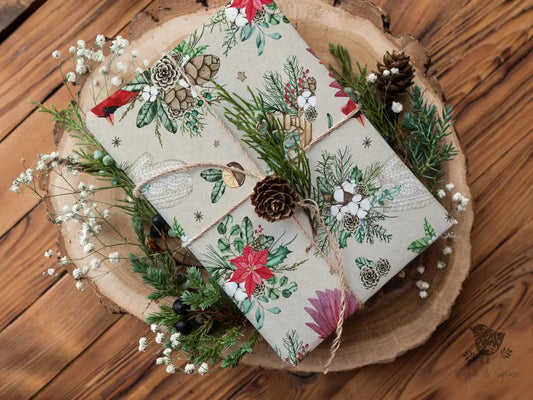 Cardinal and Warm Mittens Christmas Kraft Wrapping Paper