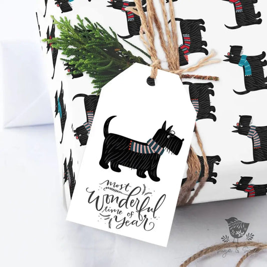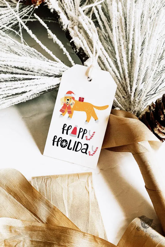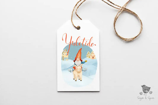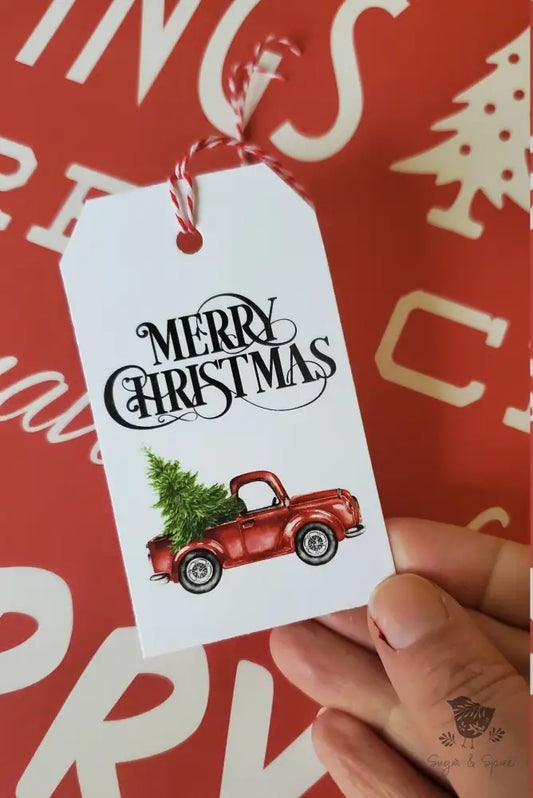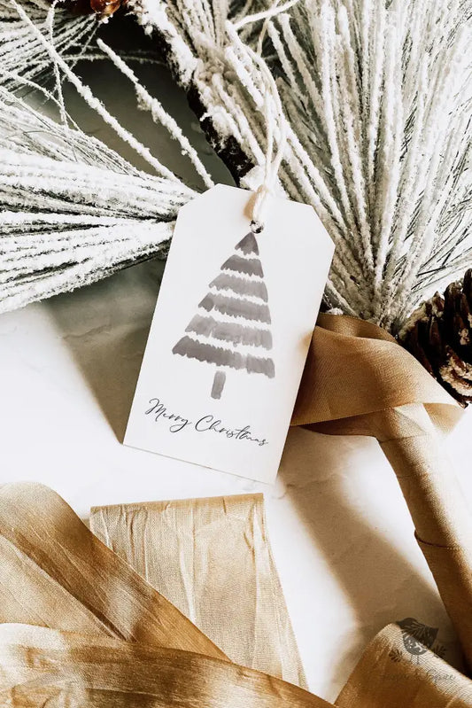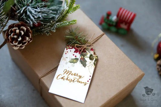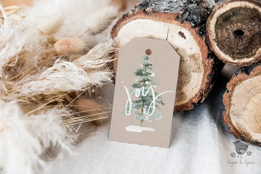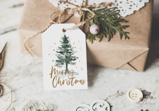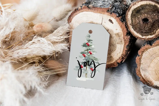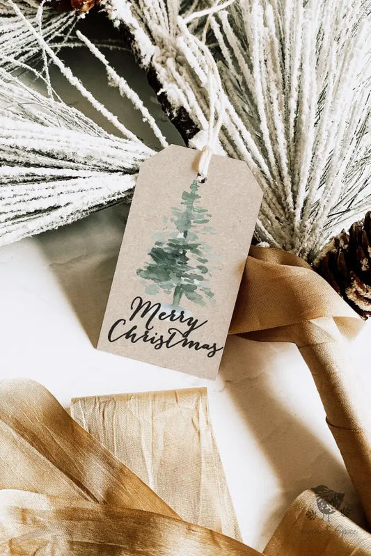 Watercolor Mint & Red Berry Christmas Tree Gift Tag