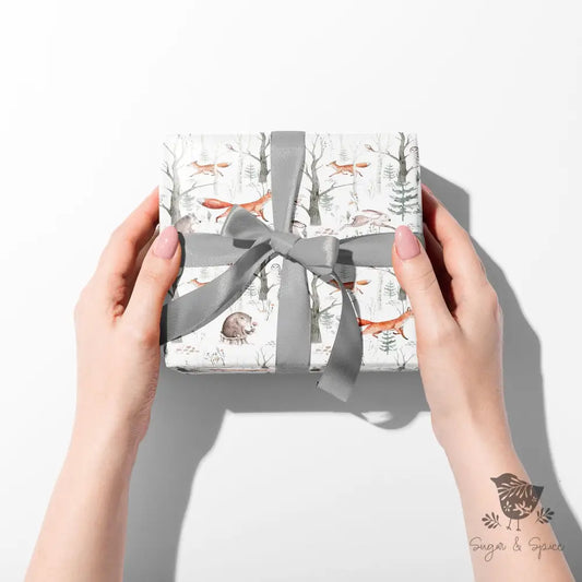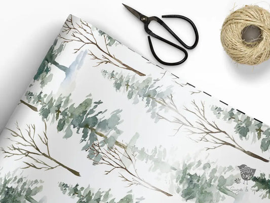 Woodland Watercolor Forest Christmas Trees Wrapping Paper
