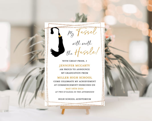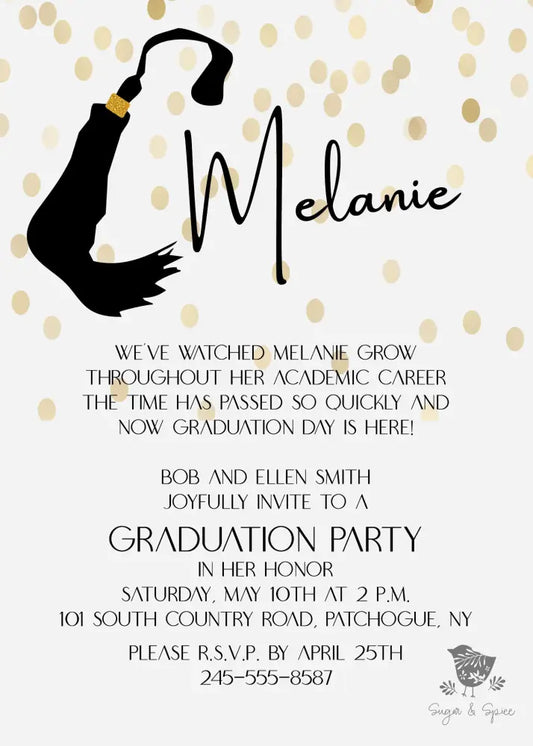 Tassel Black and Gold Graduation Invitation