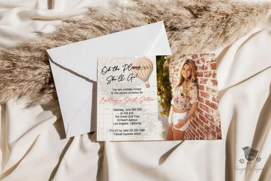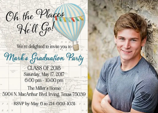 Oh the Places He'll Go Hot Air Balloon Photo Graduation Invitation