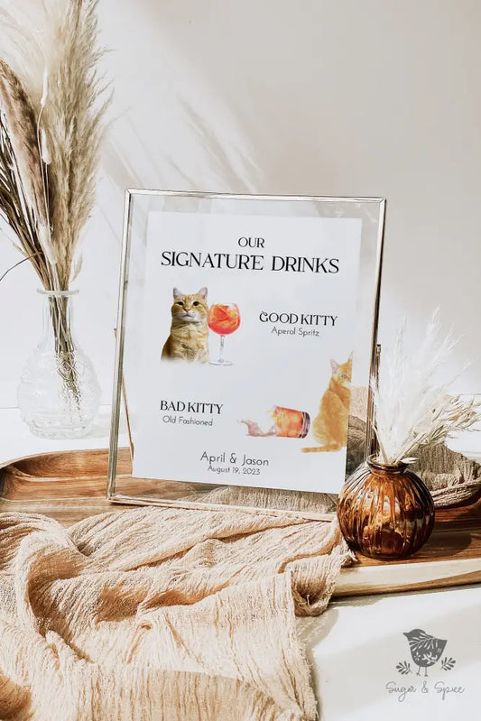Elegant Wedding Cat and Dog Signature Drink Sign