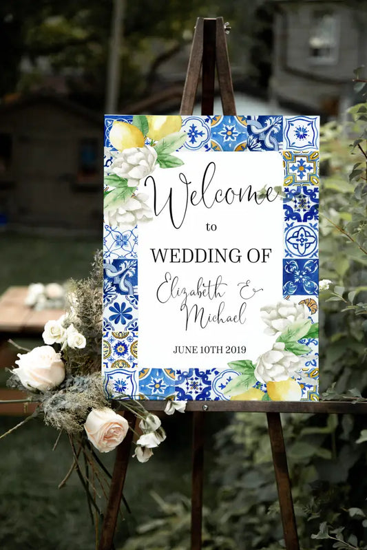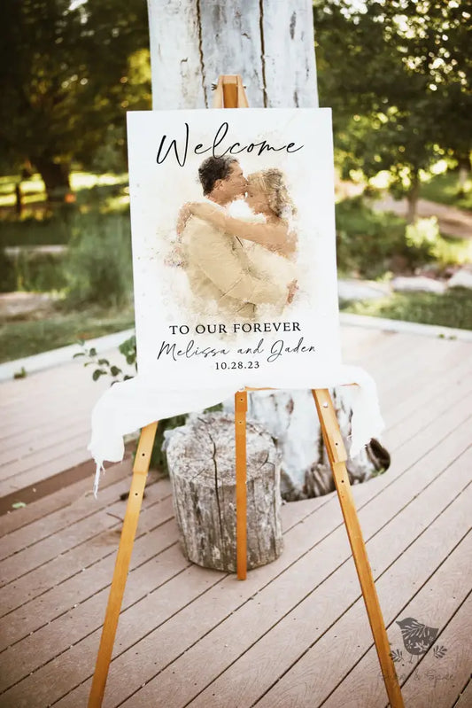 Watercolor Elegant Portrait Wedding Welcome Sign