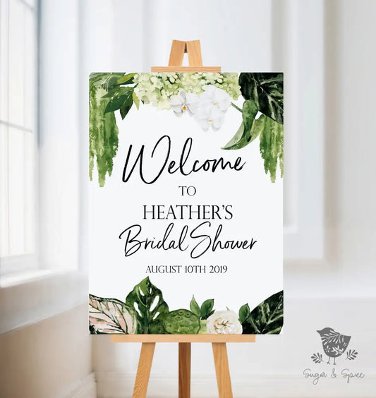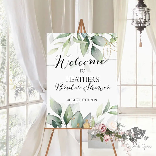 Gold Leaf and Greenery Bridal Shower Welcome Sign