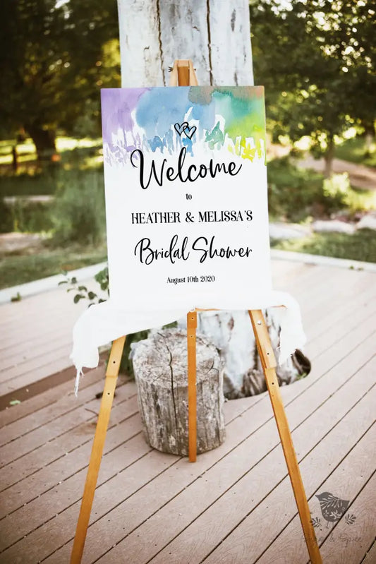 Rainbow LGBTQ Watercolor Bridal Welcome Sign