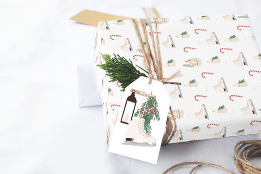 Ice Skates and Candy Cane Christmas Wrapping Paper