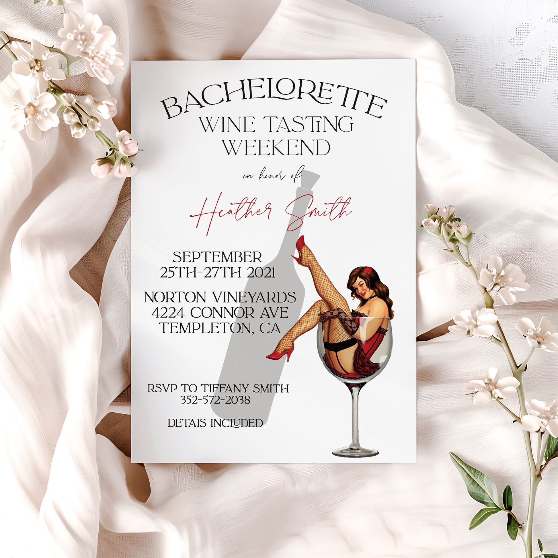Bachelorette Wine Tasting Weekend Bridal Shower Invitation