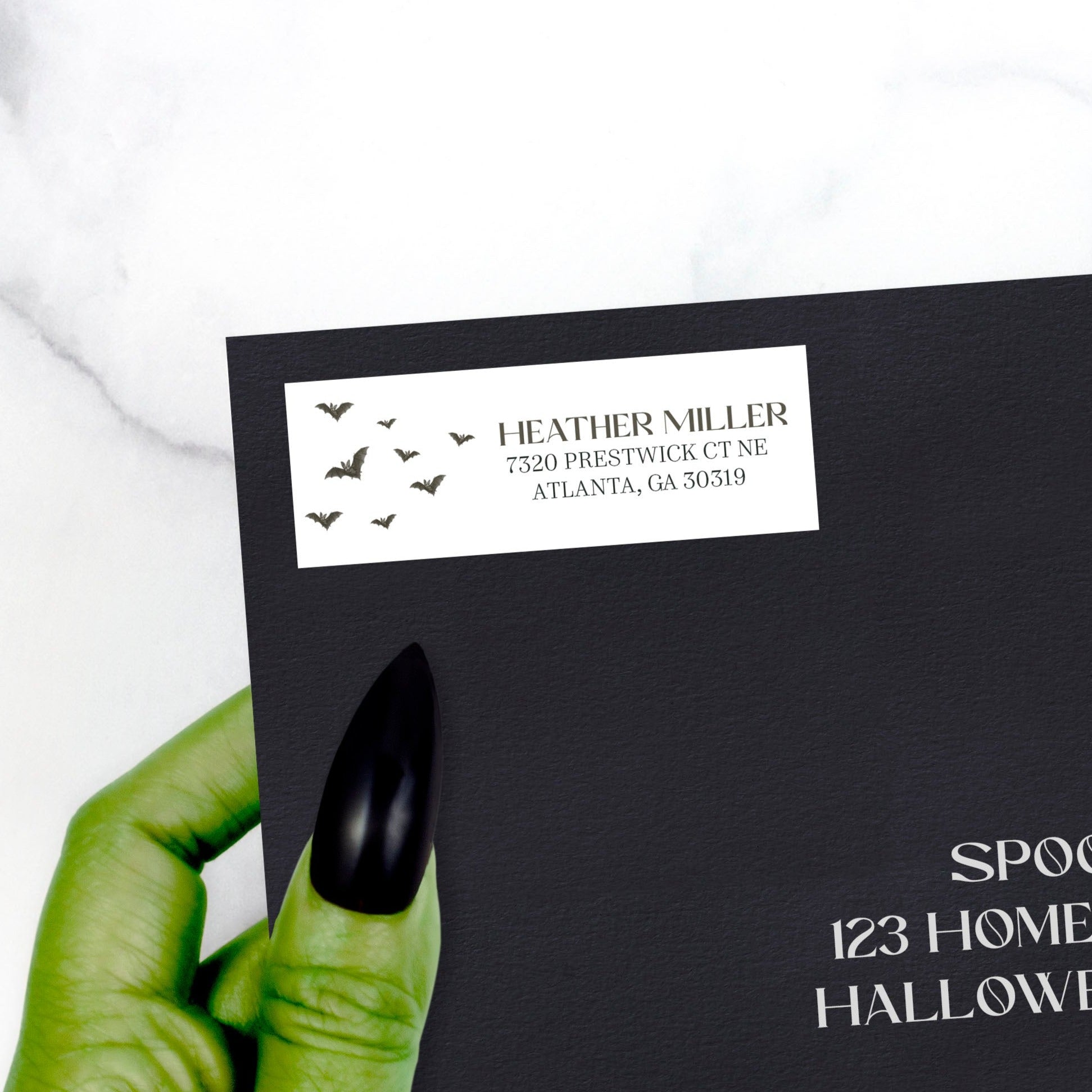 Give your mail some spooky flair with our Bats Halloween Return Address Sticker! These stickers feature adorable bat designs and will make your letters stand out. Perfect for adding a touch of fun to your Halloween cards and invitations. (Bats not included)